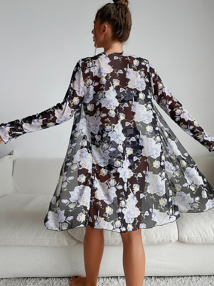 Step into confidence with the Florien - Bloom Bikini Set, a stunning mix of floral artistry and feminine allure. Designed with a flattering high-waist bottom, a tie-front bikini top, and a matching sheer cover-up, this set brings effortless sophistication to your beach or poolside look.